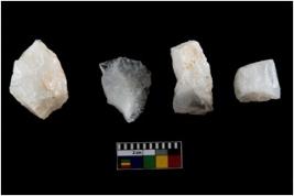 | Description / विवरण | Specimen of cores with weathered cortex and several broad fluted marks. Some of them are irregular in shape, whereas some are tapering at one end. |