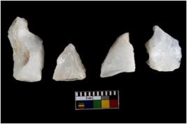 | Description / विवरण | Specimen of cores with weathered cortex and several broad fluted marks. Some of them are irregular in shape, whereas some are tapering at one end. |