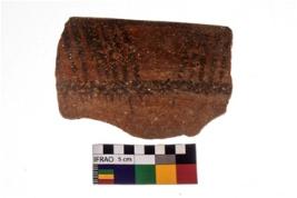 | Description / विवरण | Specimen of potsherd with black decorative geometric painting . |