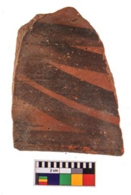 | Description / विवरण | Specimen of potsherd with black decorative geometric painting . |