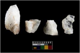 | Description / विवरण | Specimen of cores with weathered cortex and several broad fluted marks. Some of them are irregular in shape, whereas some are tapering at one end. |