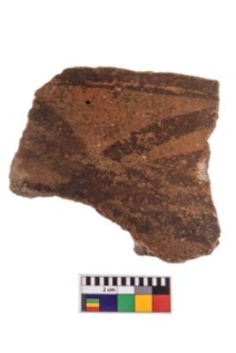 | Description / विवरण | Specimen of potsherd black on red painted pottery. It is fine fabric in sharp contrast with painted design are executed in black pigment. |