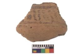 | Description / विवरण | Specimen of black on red ware with black decorative Parallel wavy lines geometric painting. |