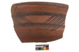 | Description / विवरण | Specimen of potsherd with black decorative geometric painting. Type Black on Red Ware . |