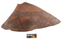| Description / विवरण | Specimen of potsherd with black decorative geometric painting. Type Black on Red Ware . |