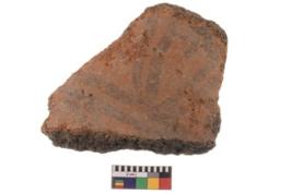 | Description / विवरण | Specimen of black on red ware with black decorative Joint curves geometric painting. |