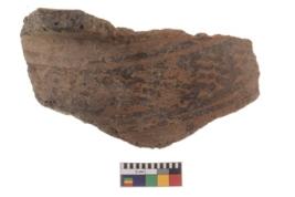 | Description / विवरण | Specimen of black on red ware with black decorative Wavy lattice pattern geometric painting. |