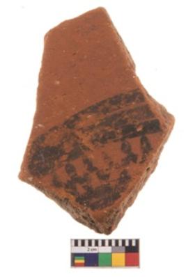 | Description / विवरण | Specimen of potsherd with black decorative geometric painting. Type Black on Red Ware . |