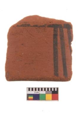 | Description / विवरण | Specimen of potsherd with black decorative geometric painting. Type Black on Red Ware . |