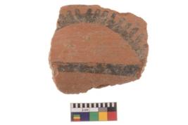 | Description / विवरण | Specimen of black on red ware with black decorative Spike curve geometric painting. |