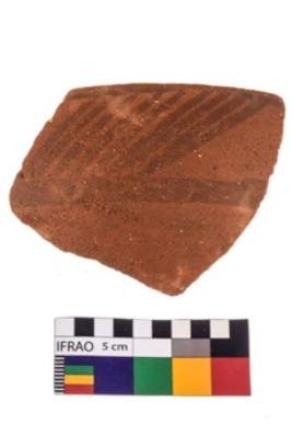 | Description / विवरण | Specimen of potsherd with black decorative linear painting . |