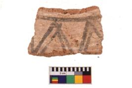 | Description / विवरण | A specimen of a potsherd. It is reddish in colour with black decorative geometric painting on it. |