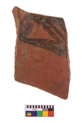 | Description / विवरण | Specimen of potsherd with black decorative geometric painting . |