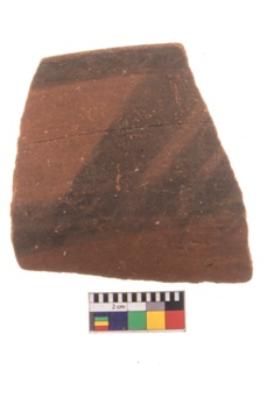 | Description / विवरण | Specimen of potsherd with black decorative geometric painting. Type Black on Red Ware . |