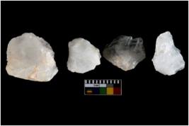 | Description / विवरण | Specimen of cores with weathered cortex and several broad fluted marks. Some of them are irregular in shape, whereas some are tapering at one end. |
