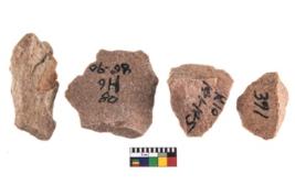 | Description / विवरण | It made up of a short flakes with sides trimmed. It rained pebbly cortex on one side and irregular thin edge on the other. |