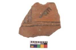 | Description / विवरण | Specimen of black on red ware with black decorative geometric painting. |