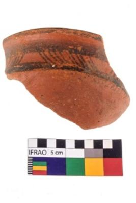 | Description / विवरण | Specimen of potsherd with black decorative geometric painting . |