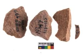 | Description / विवरण | It made up of a short flakes with sides trimmed. It rained pebbly cortex on one side and irregular thin edge on the other. |