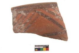 | Description / विवरण | Specimen of potsherd with black decorative geometric painting. Type Black on Red Ware . |