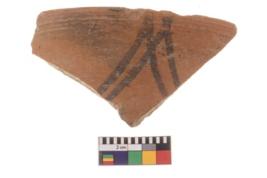 | Description / विवरण | Specimen of black on red ware with black decorative Intersecting curves geometric painting. |