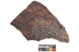 | Description / विवरण | Specimen of black on red ware with decorative geometric Double register of interlocked zig-zig lines between bands painting. |