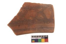 | Description / विवरण | Specimen of potsherd with black decorative geometric painting. Type Black on Red Ware . |