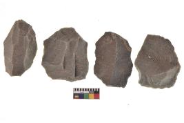 | Description / विवरण | There are n-4 of utilized flake cores. There are multidirectional irregular dominant scar pattern on both dorsal and ventral face of the cores. |
