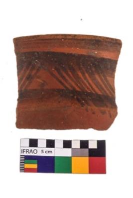 | Description / विवरण | Specimen of potsherd with black decorative geometric painting . |