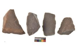| Description / विवरण | There are n-4 of utilized flake cores. There are multidirectional irregular dominant scar pattern on both dorsal and ventral face of the cores. |