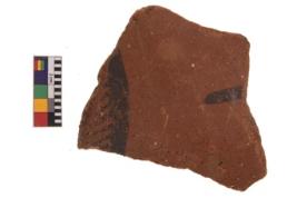 | Description / विवरण | Specimen of fine red ware; it shows geometric pattern painting on its exterior. Type Black on Red Ware . |
