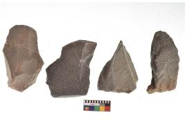 | Description / विवरण | There are n-4 of utilized flake cores. There are multidirectional irregular dominant scar pattern on both dorsal and ventral face of the cores. |