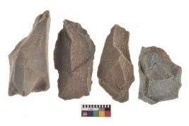 | Description / विवरण | There are n-4 of utilized flake cores. There are multidirectional irregular dominant scar pattern on both dorsal and ventral face of the cores. |