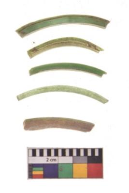 | Description / विवरण | Specimen n-5 having glossy green, pale green and ocre surface. They are circular in cross-section. |
