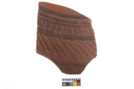 | Description / विवरण | Specimen of potsherd with black decorative geometric painting. Type Black on Red Ware . |