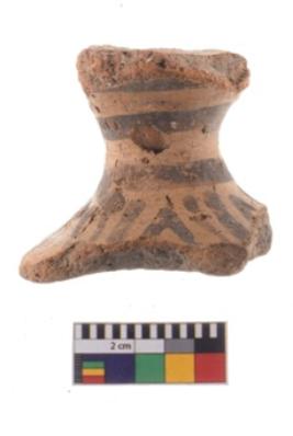 | Description / विवरण | A fragment of a potsherd. It is reddish in colour with black decorative geometric painting on it. |