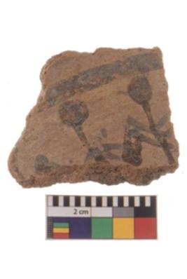 | Description / विवरण | Specimen of black on red ware with black decorative Human motifs nature painting. |