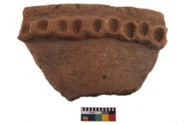 | Description / विवरण | Specimen of red ware with beaded decoration below the rim portion. |