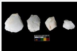 | Description / विवरण | Specimen of cores with weathered cortex and several broad fluted marks. Some of them are irregular in shape, whereas some are tapering at one end. |