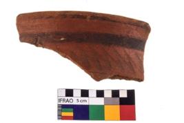 | Description / विवरण | Specimen of potsherd black on red painted pottery. It is fine fabric in sharp contrast with painted design are executed in black pigment. |
