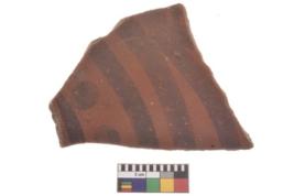 | Description / विवरण | Specimen of black on red ware with decorative geometric parallel lines painting. |