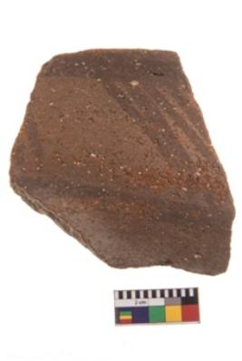 | Description / विवरण | Specimen of potsherd with black decorative geometric painting. Type Black on Red Ware . |