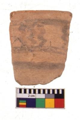 | Description / विवरण | A specimen of a potsherd. It is reddish in colour with black decorative geometric painting on it. |