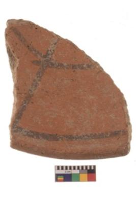 | Description / विवरण | Specimen of black on red ware with black decorative geometric painting. |