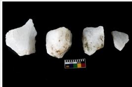 | Description / विवरण | Specimen of cores with weathered cortex and several broad fluted marks. Some of them are irregular in shape, whereas some are tapering at one end. |