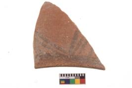 | Description / विवरण | Specimen of potsherd with black decorative geometric painting. Type Black on Red Ware . |