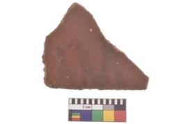 | Description / विवरण | Specimen of black on red ware with decorative geometric A row of arches over a horizontal band painting. |