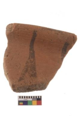 | Description / विवरण | Specimen of black on red ware with black decorative Triangles geometric painting. |