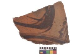 | Description / विवरण | Specimen of black on red ware with decorative geometric Fish motif painting. |