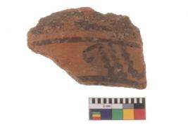 | Description / विवरण | Specimen of black on red ware with black decorative Parallel wavy lines geometric painting. |